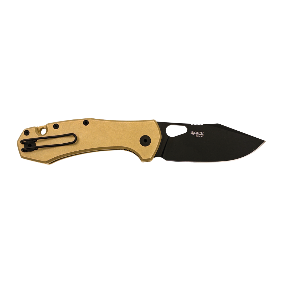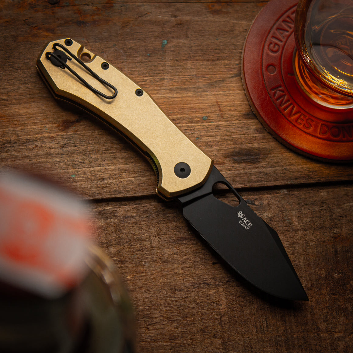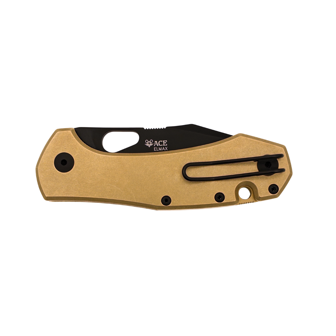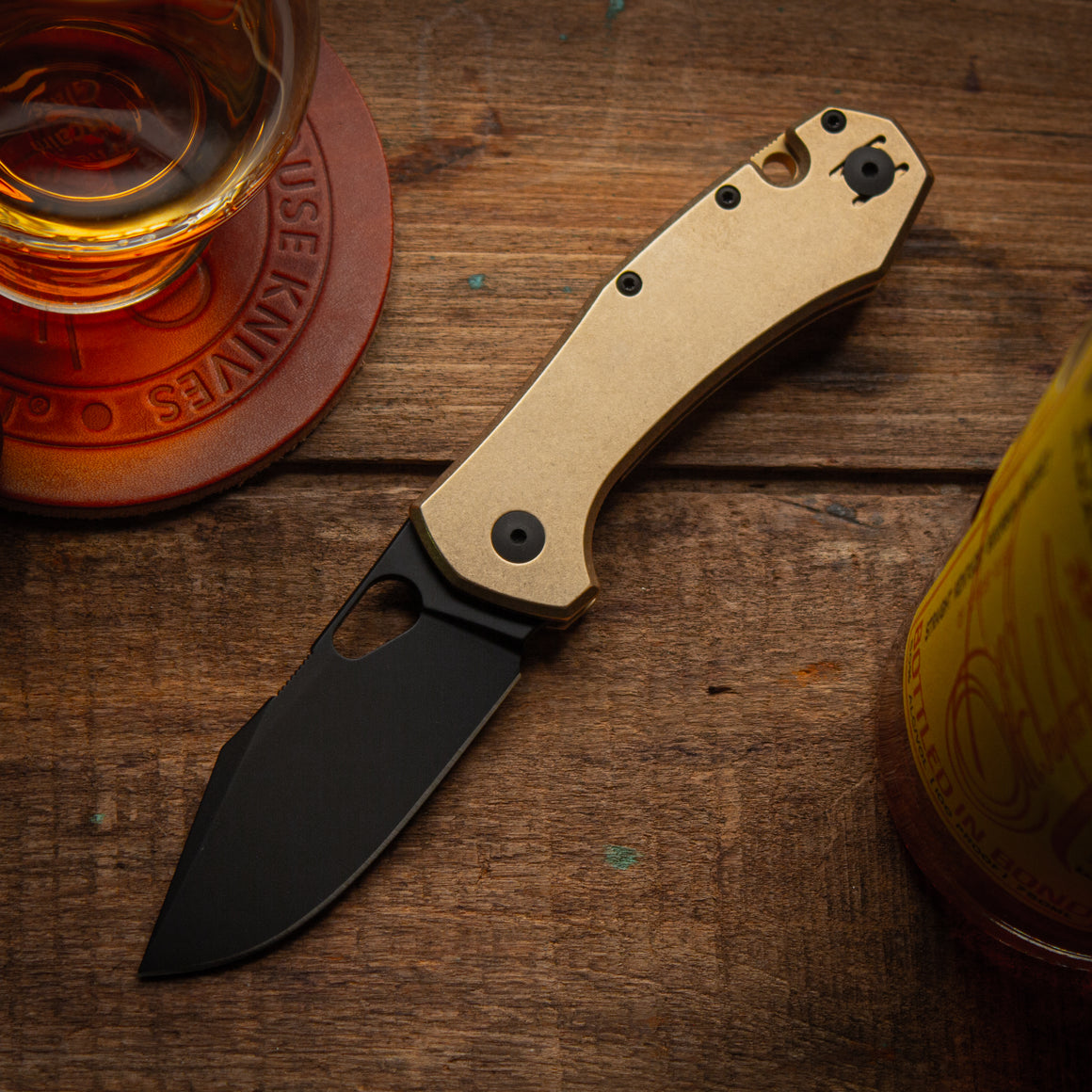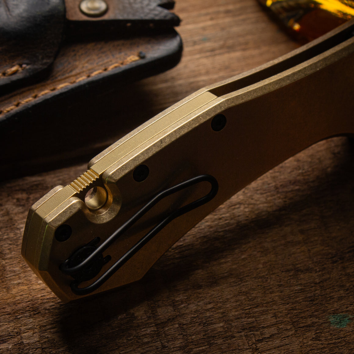 This particular edition brings a new weight and character to the design. The Elmax blade is treated with a PVD finish, providing a dark, resilient edge that contrasts beautifully with the flat brass scales. Over time, the brass scales and matching brass backspacer will develop a unique patina, reflecting the history of how and where you use it.