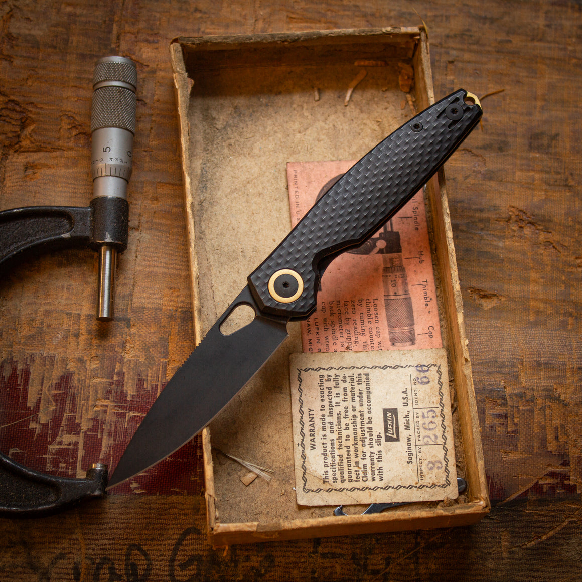 The dark, industrial aesthetic is elevated by vibrant brass accents on the pivot collar and backspacer, providing a warm contrast that will evolve and patina, telling its own story over years of use. By merging the spirit of old-world manufacturing with modern materials, we’ve created a folder that feels like a piece of Lansing history in the pocket. It is a tool for those who value the narrative behind their gear and demand a knife that balances sophisticated design with the rugged reliability required for a lifetime of hard work.