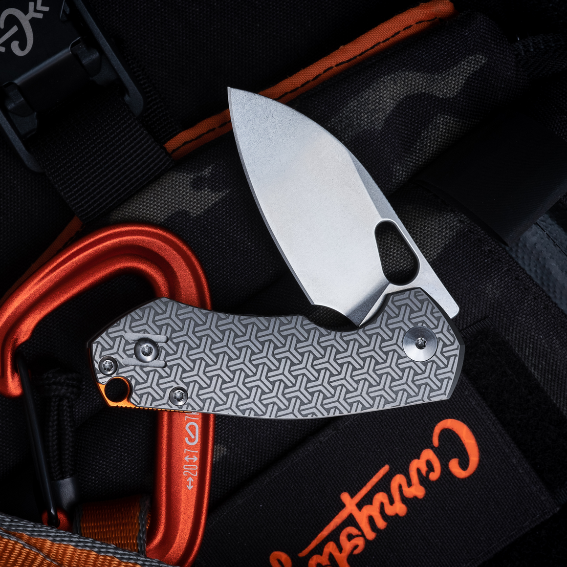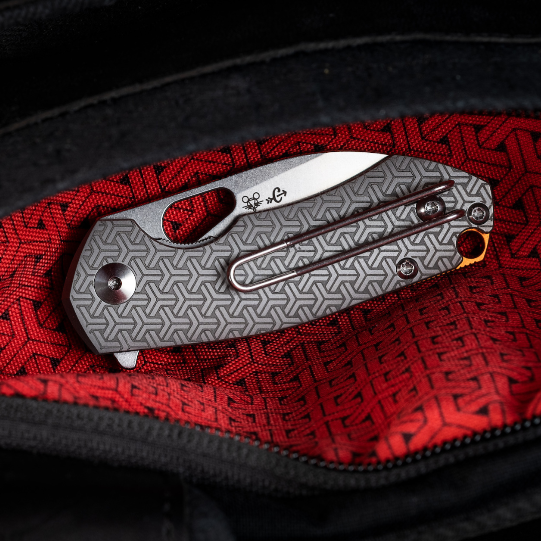 This special ACE Riv showcases Carryology’s iconic Auxikko pattern laser engraved onto its Titanium scales. But that's not all! We also designed this new Riv as a liner lock, rather than a framelock. Plus, we've included a reversible clip, catering to both left-handed and right-handed users.