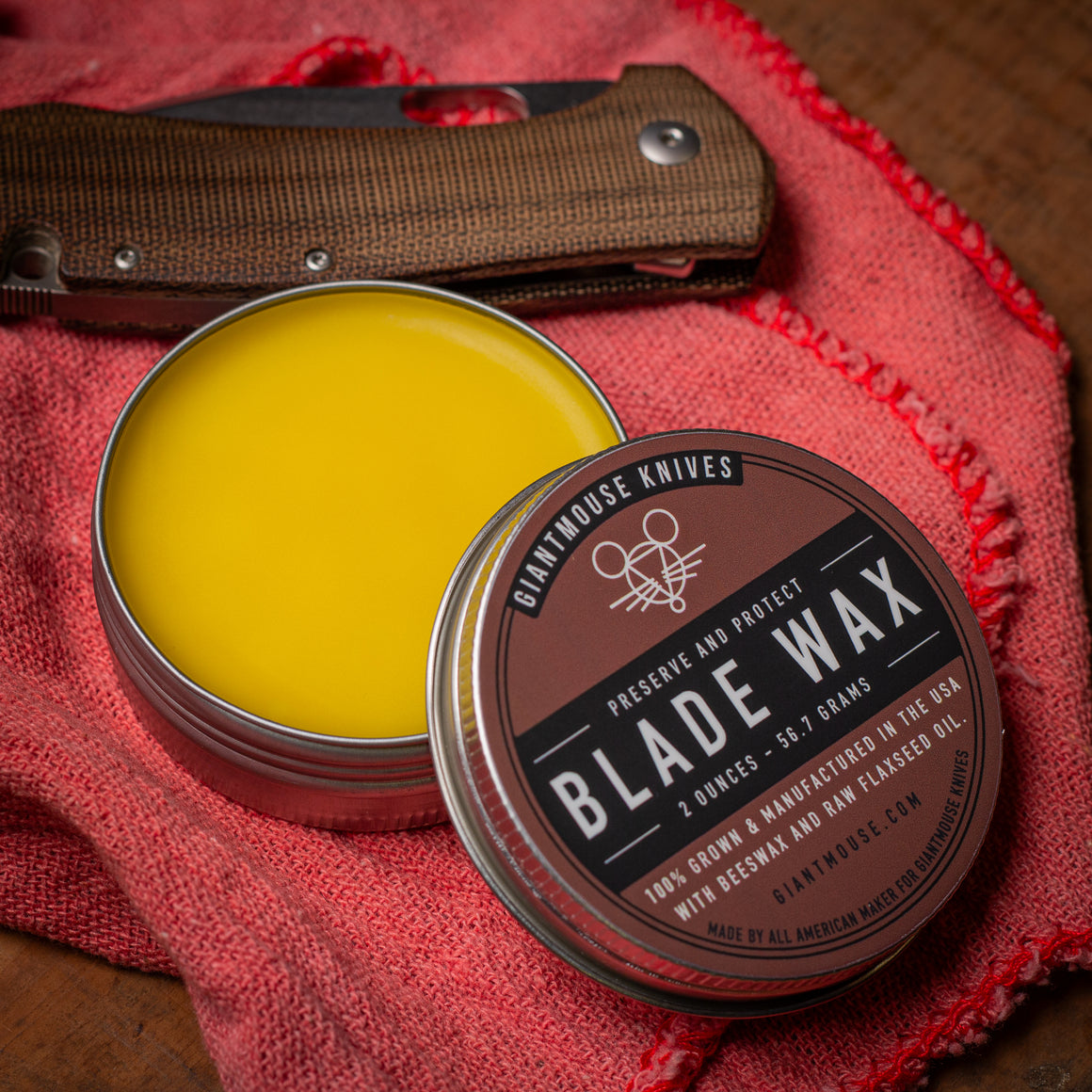 Hand-poured in Jamestown, NY by All American Maker, this 2 oz. Blade Wax is a premium blend of American-grown beeswax and raw flaxseed oil. It provides a reliable barrier against rust for hand tools and knives, particularly those crafted from carbon or tool steels that require more maintenance than modern stainless varieties. This all-natural formula nourishes metal surfaces to help extend their lifespan and maintain performance in the field.