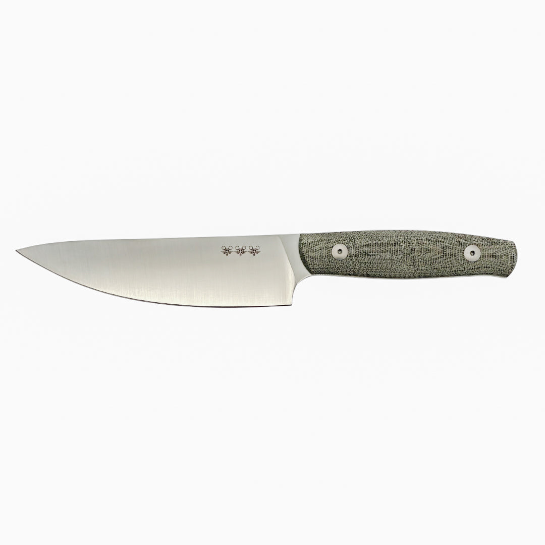 What is more, the ergonomics of the knife have been carefully considered to optimize balance and control in usage. This is only enhanced by the green canvas Micarta handle, chosen for its superior strength and resistance. Beyond just the practical aspect, Micarta adds a dash of refined elegance to the knife, beautifully complementing the satin finish of the steel.