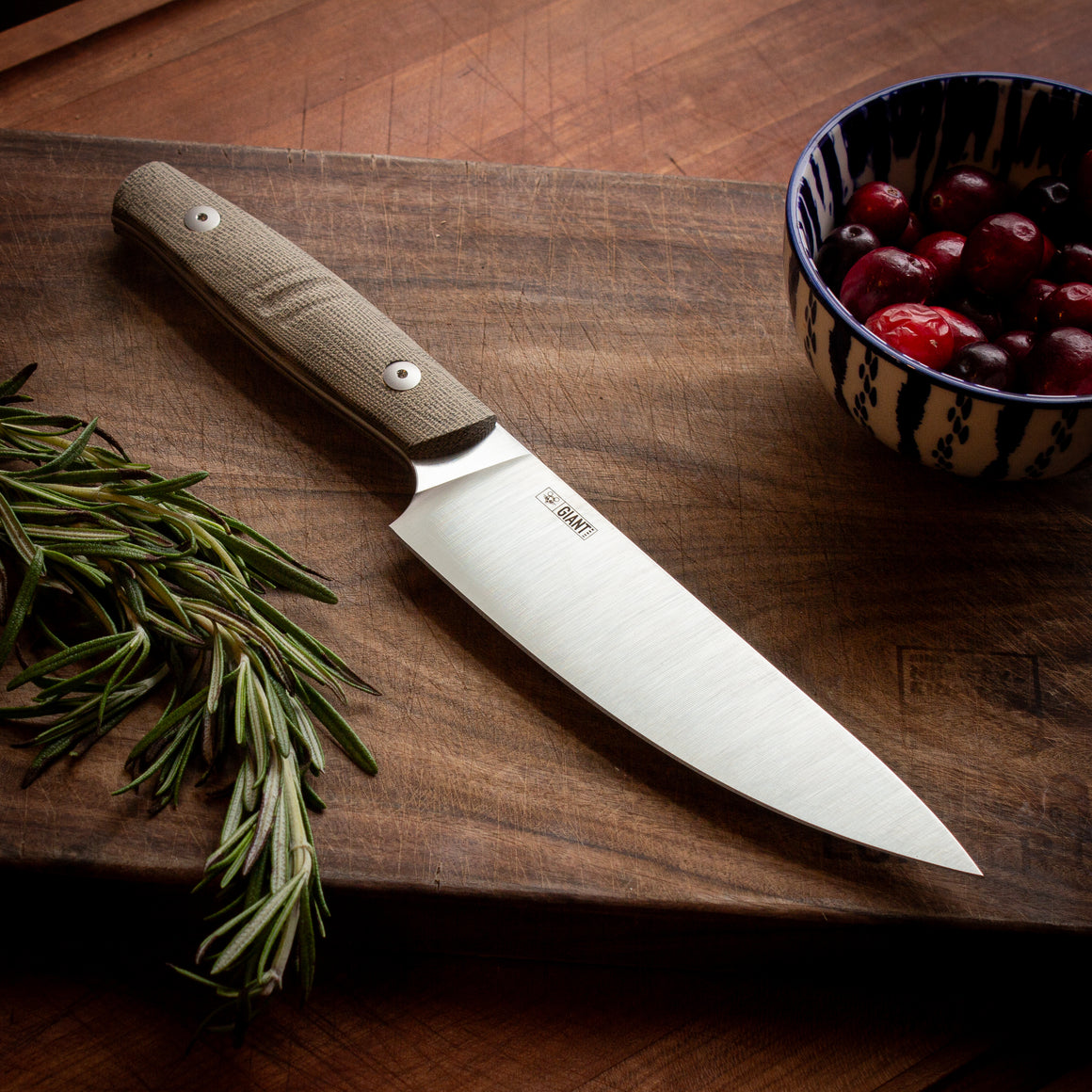 A chef is only as sharp as their tools. With the GiantMouse Green Canvas Carving Knife, we have aimed for nothing less than culinary cutlery excellence. This knife was built to thrive during the most critical steps of your meal preparation, crafted with the attention to quality GiantMouse is known for. The perfect balance of aesthetics and utility, this tool does not just look impressive. It performs at an exceptional level, making it a prized addition to any cooking arsenal.
