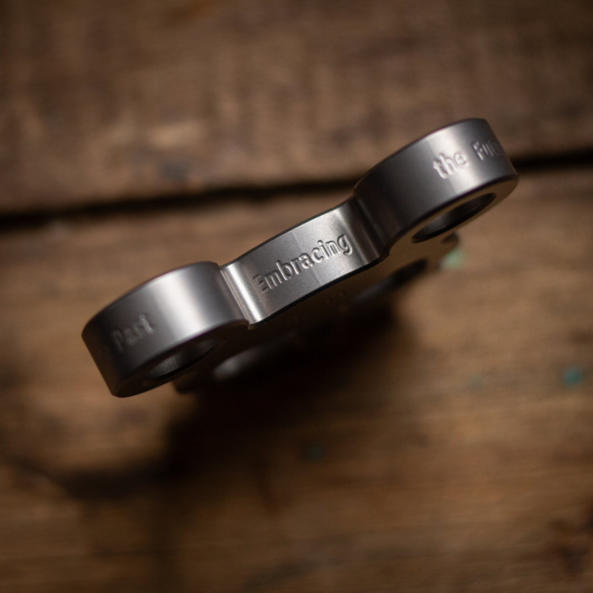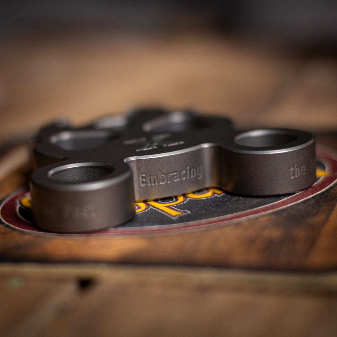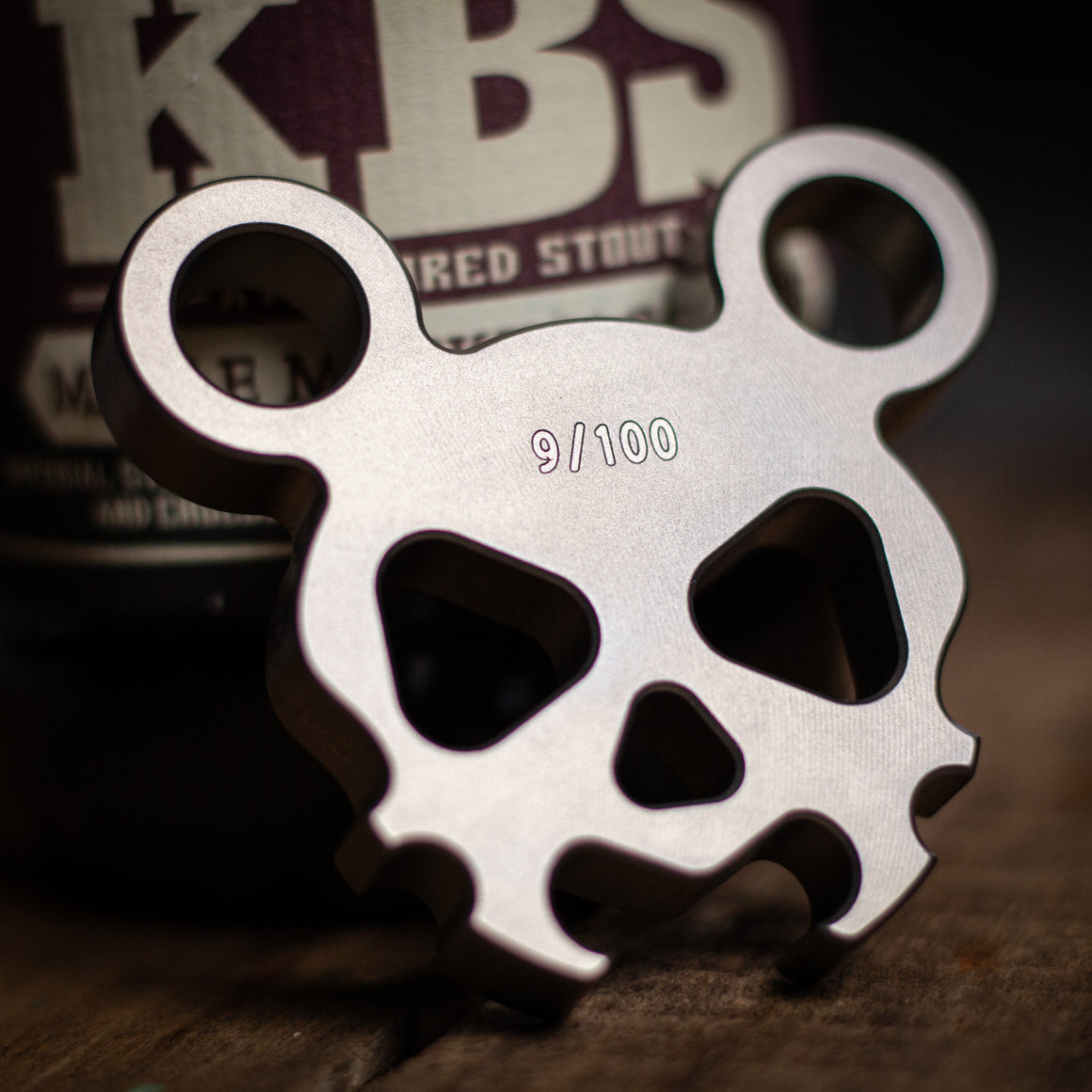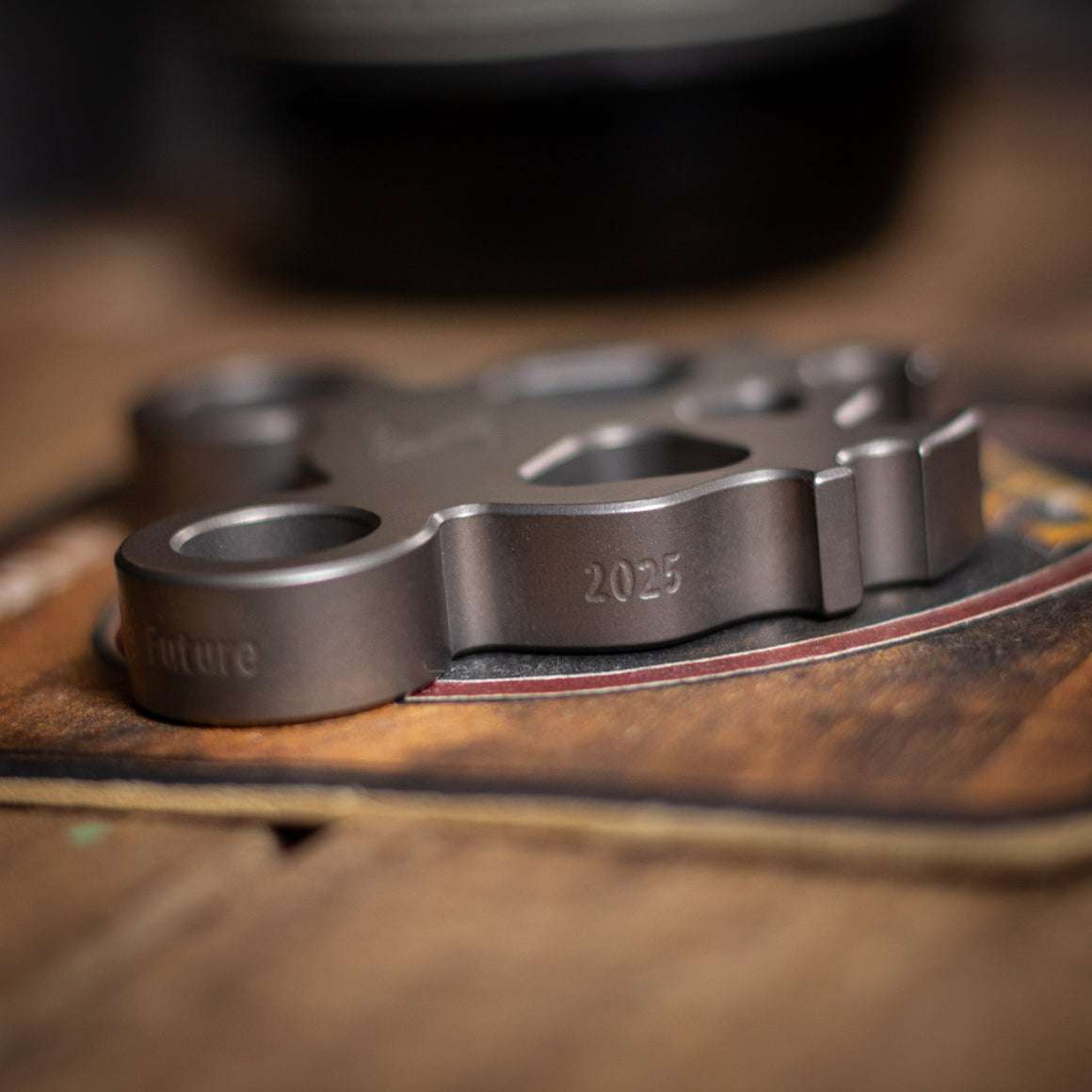 The Morbid Mouse – Jubilee celebrates ten years of GiantMouse and the community that has grown with it. Crafted in the USA from solid titanium, each piece features the Jubilee X logo on one side, its number out of 100 on the other, and the words “Celebrating the Past, Embracing the Future 2025” around the edge, honoring a decade of craft, friendships, and forward momentum. Small but enduring, it is a tangible piece of history and a reminder of the journey still ahead.