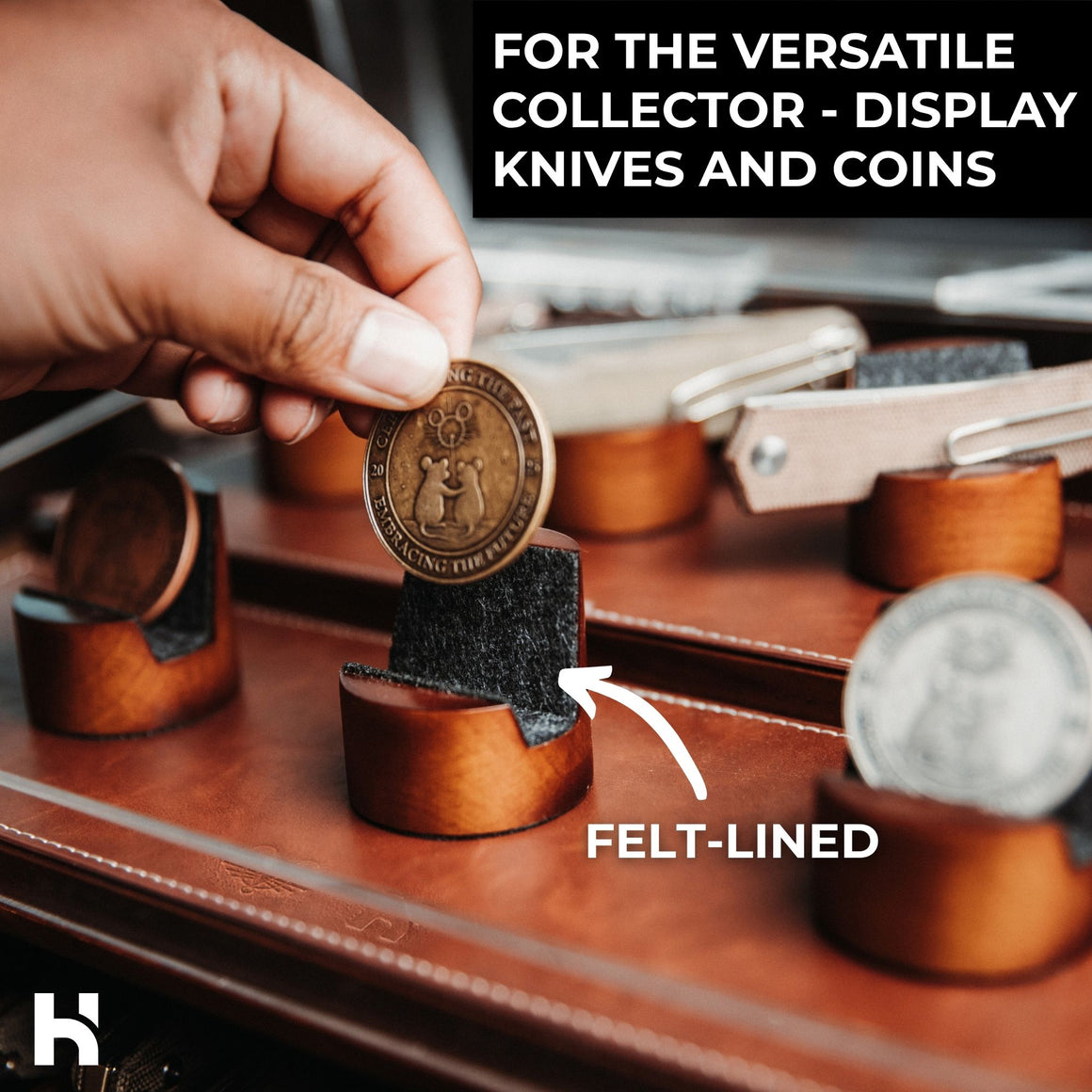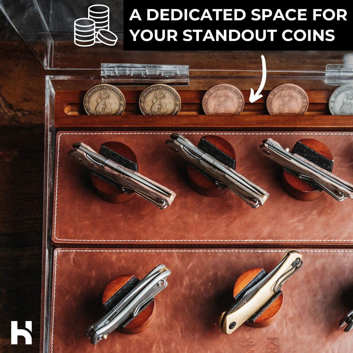 Dedicated Coin Slot: New top-row slot designed to showcase standout coins alongside your knives for a unified display.
